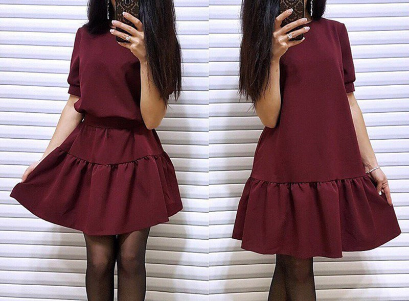 Abito da donna semplice con maniche corte e gonna con volant.