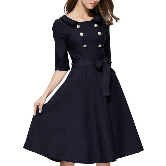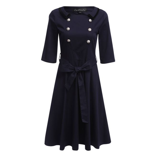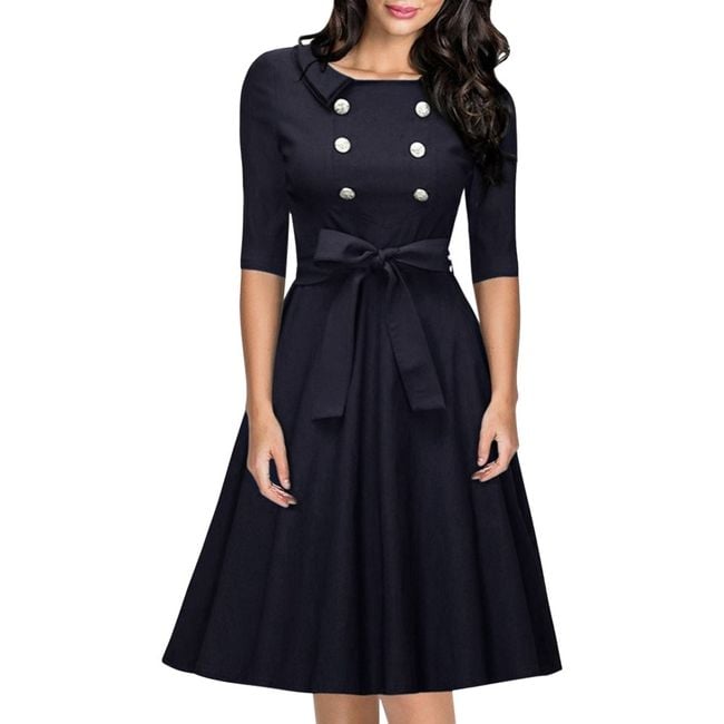 Abito elegante con bottoni decorato con un elegante fiocco in vita.