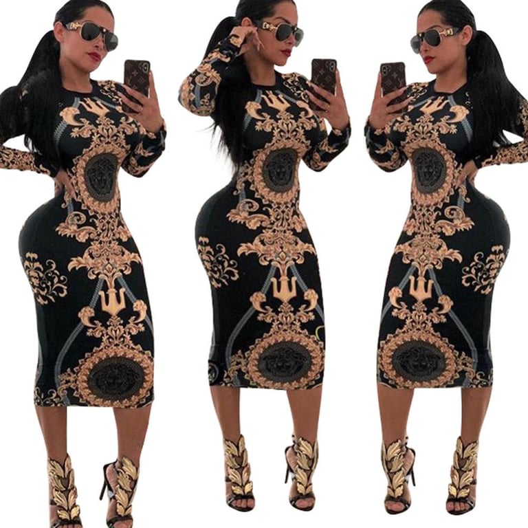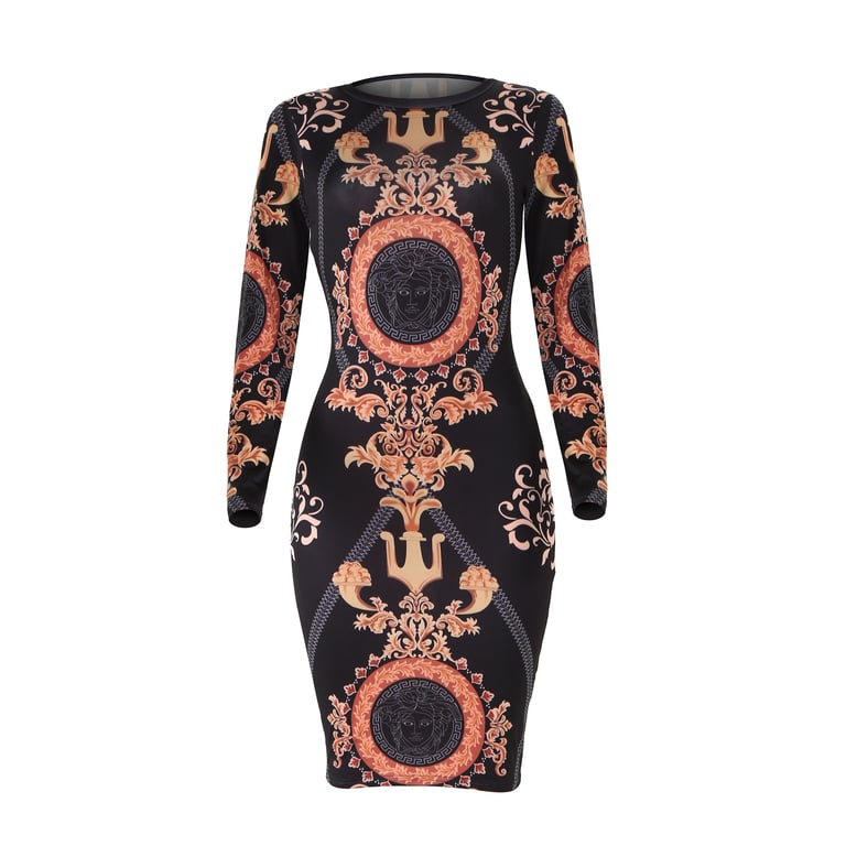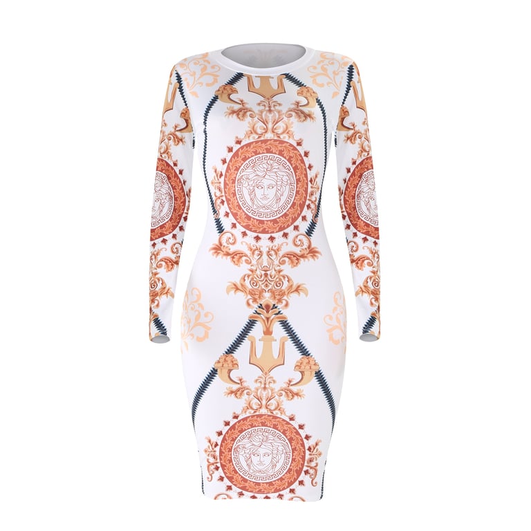 Abito da donna in lunghezza midi con scollatura rotonda e maniche lunghe.