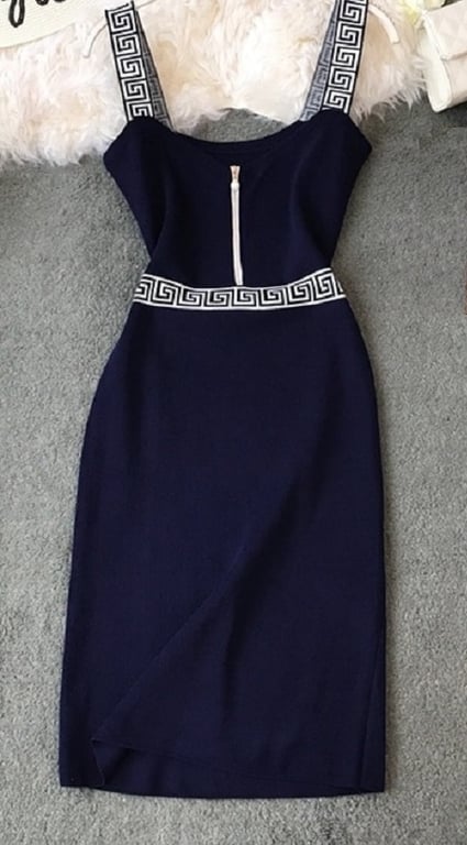 Abito corto da donna in tessuto elasticizzato con scollatura a zip.
