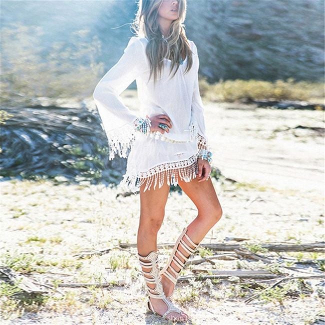 Abito da donna dal taglio morbido emana energia positiva grazie alle decorazioni in stile bohemien ed è ideale per le calde giornate di sole. Sono disponibili 2 varianti di colore.