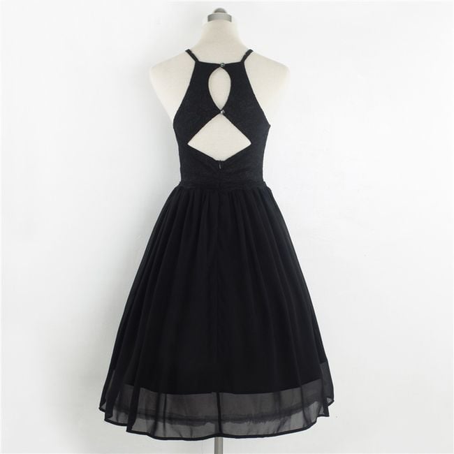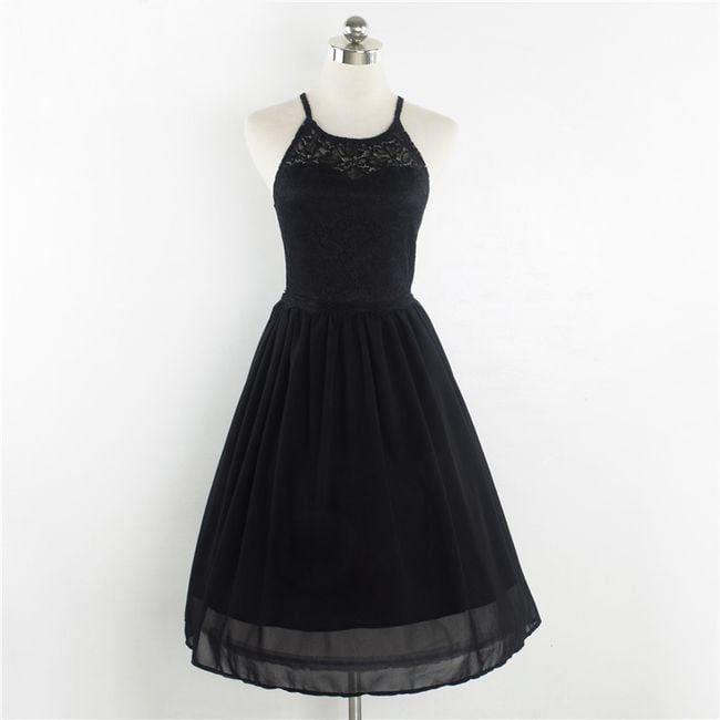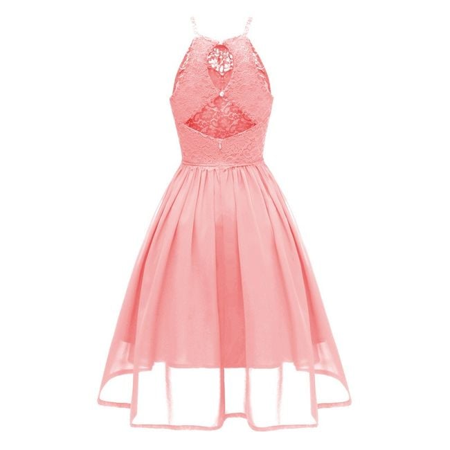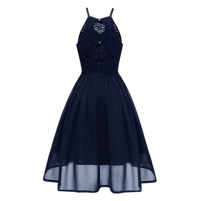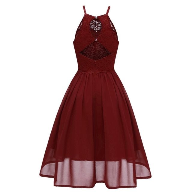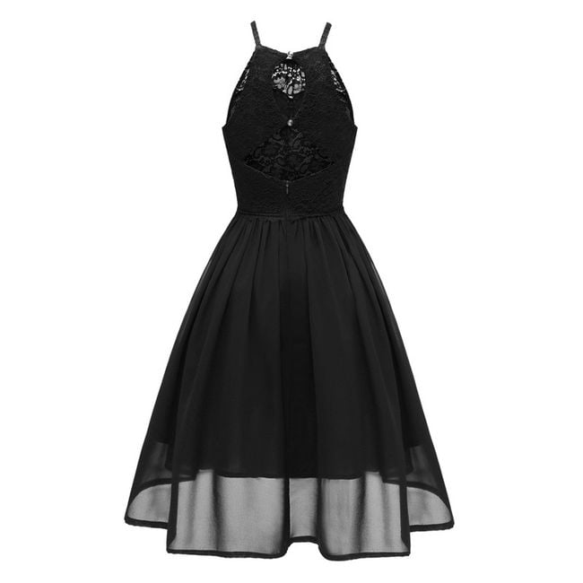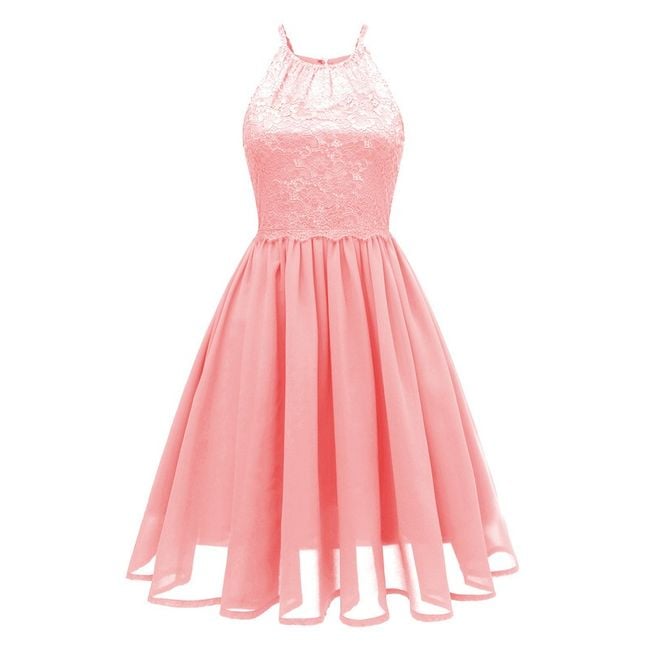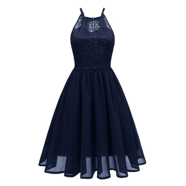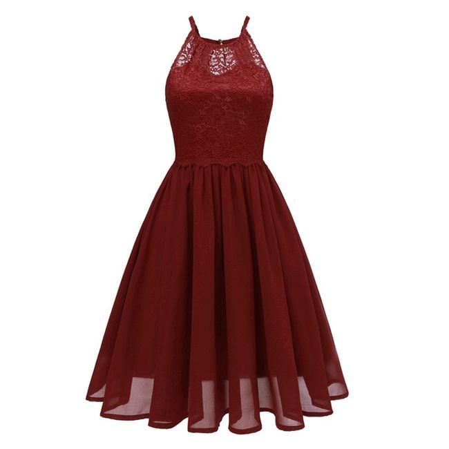 Il vestito appare elegante e ha una gonna a campana.