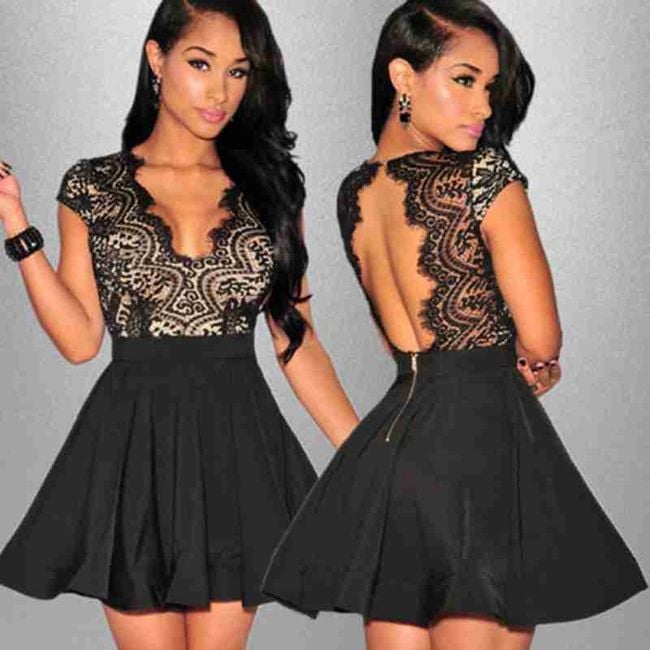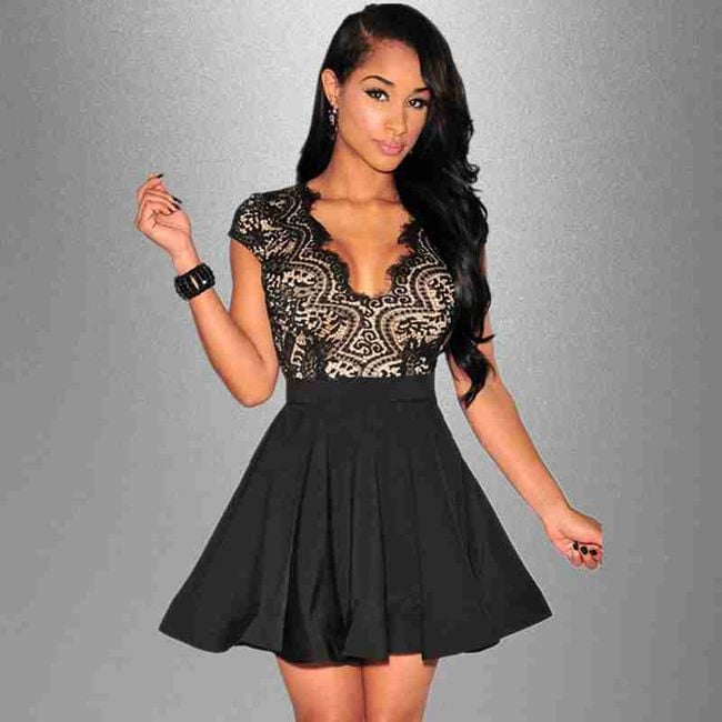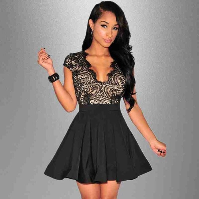 Il vestito ha un scollo più profondo e una gonna a trapezio.