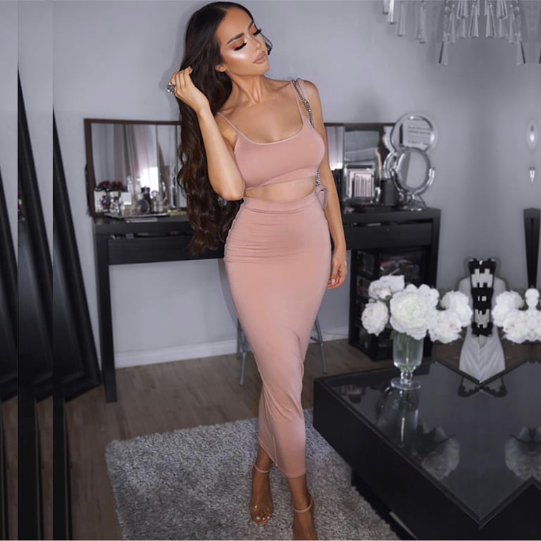 Abito estivo composto da una lunga gonna e un mini top.