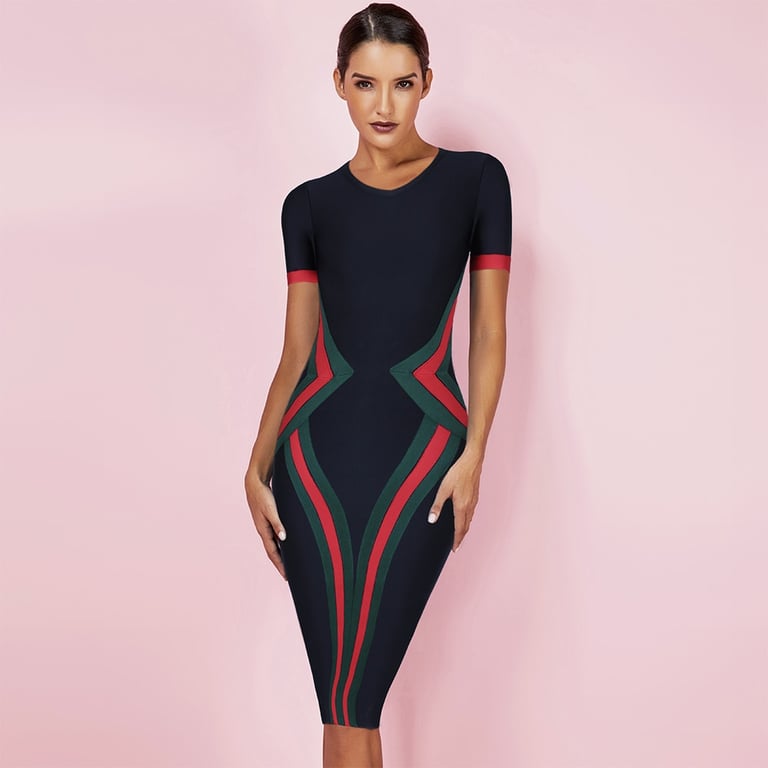 Abito elegante da donna a tubino con maniche corte.