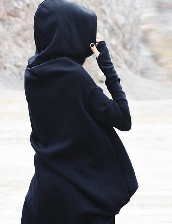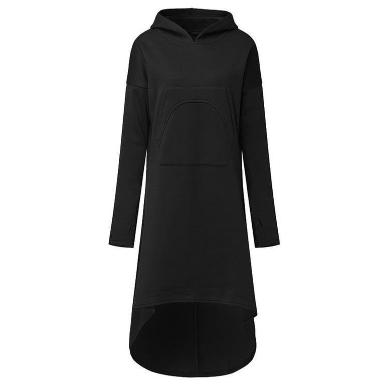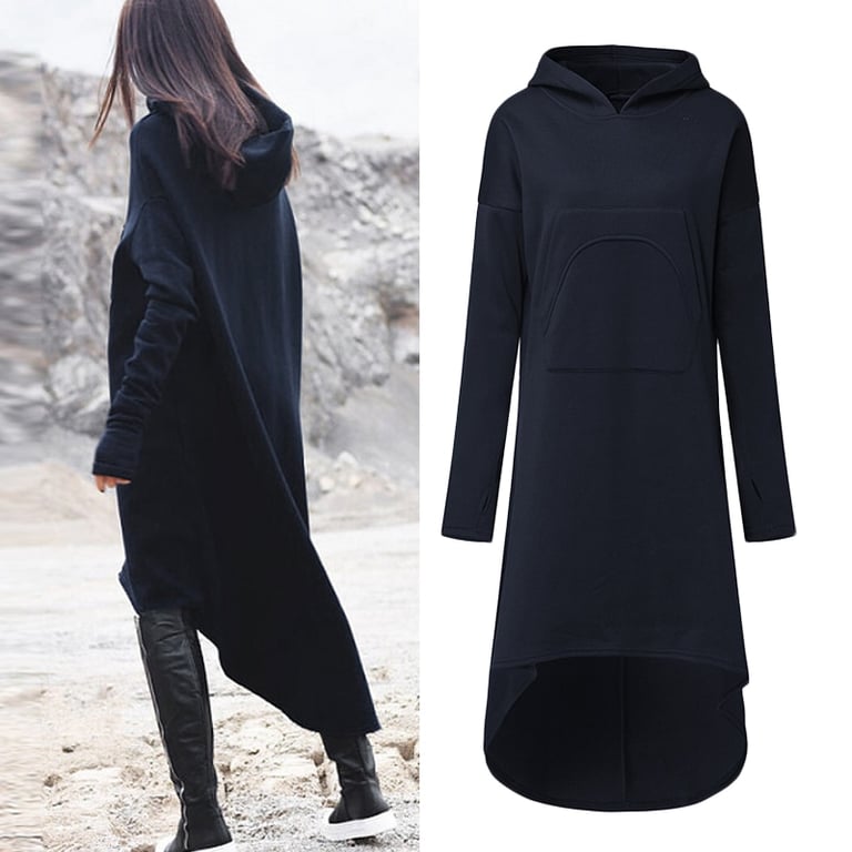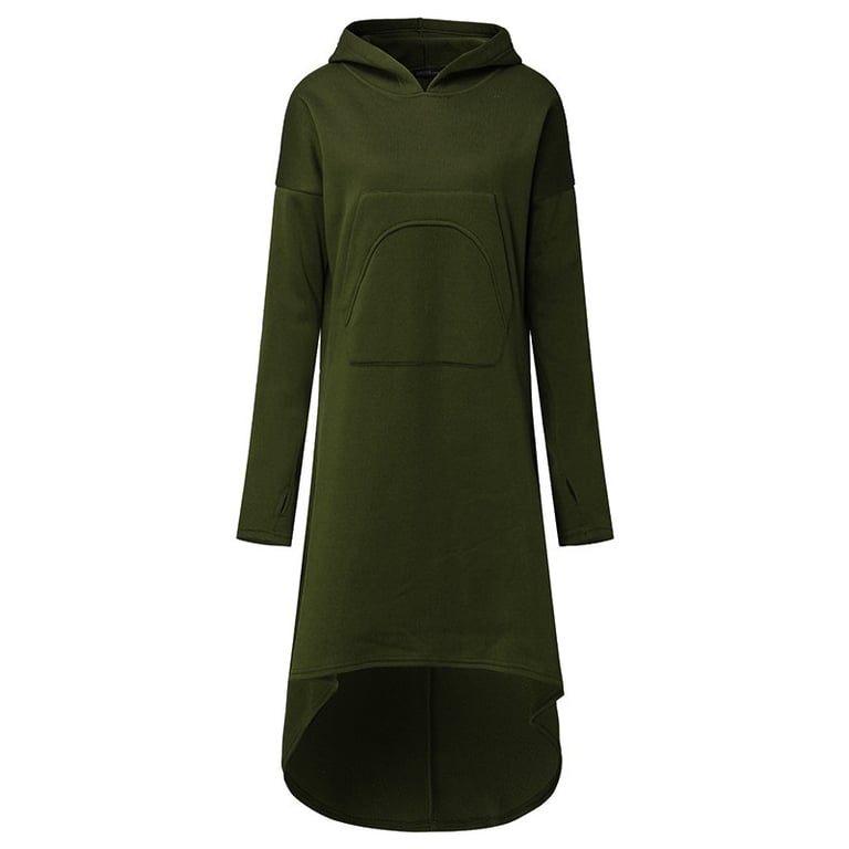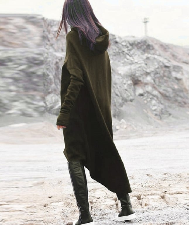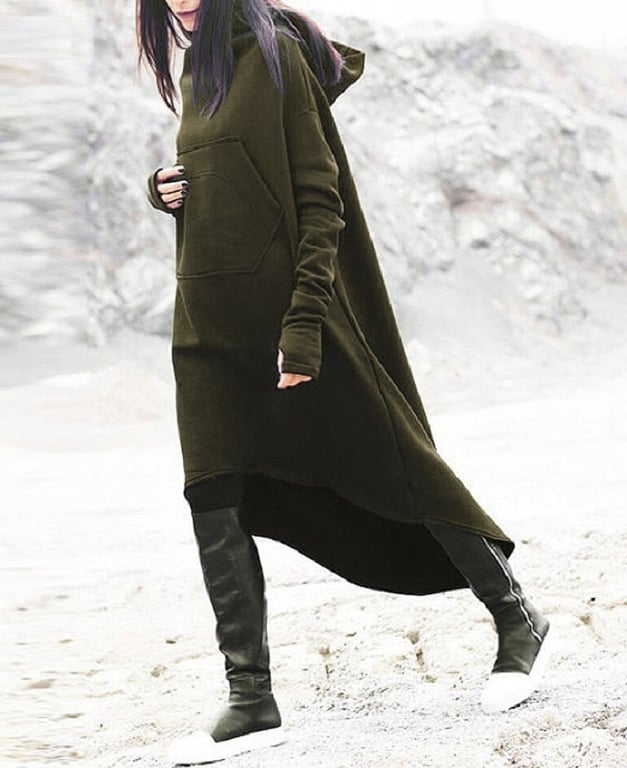 Stiloso abito in felpa autunnale con maniche lunghe e cappuccio.