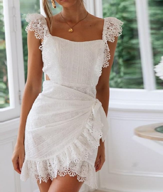 Abito in pizzo bianco con volant