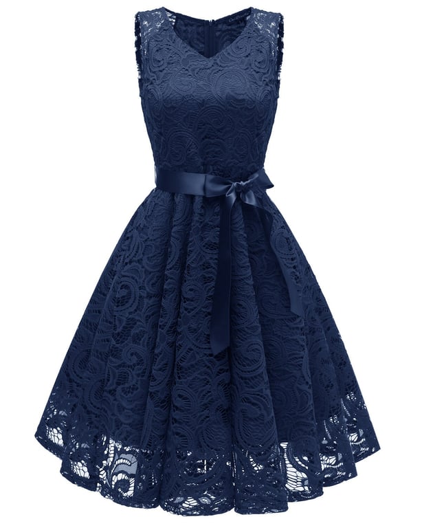 Abito da donna senza maniche. Decolleté elegante e gonna ampia.