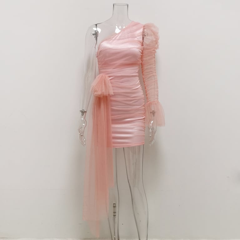 Originale abito mini in tulle con una manica lunga.