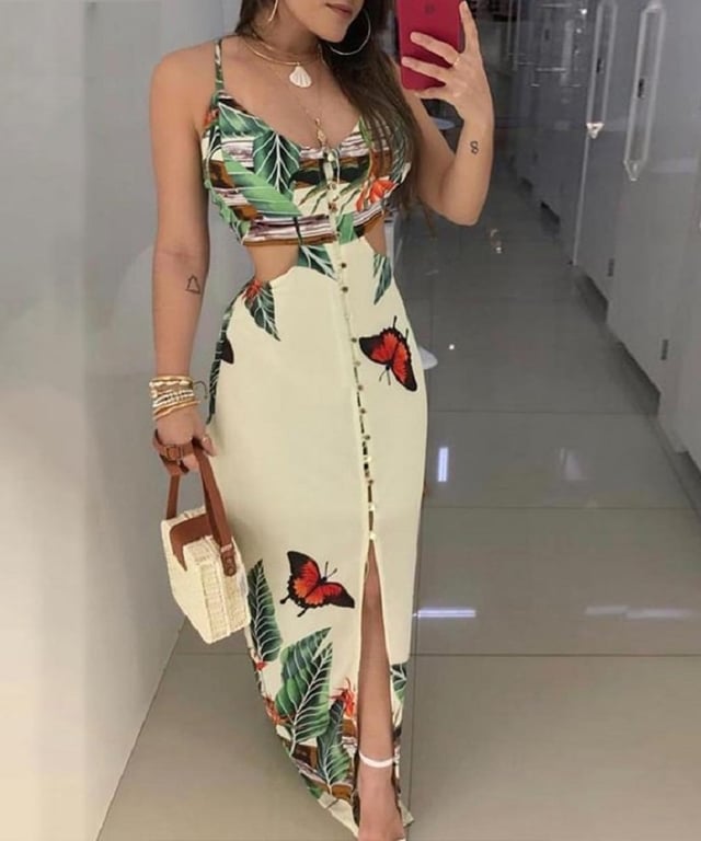 Abito lungo da donna con motivo estivo.