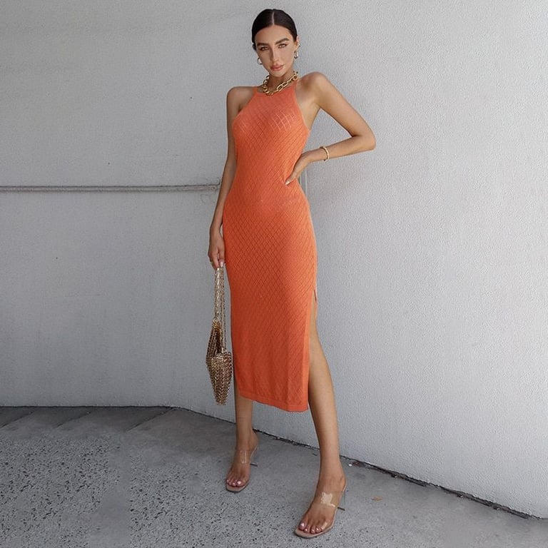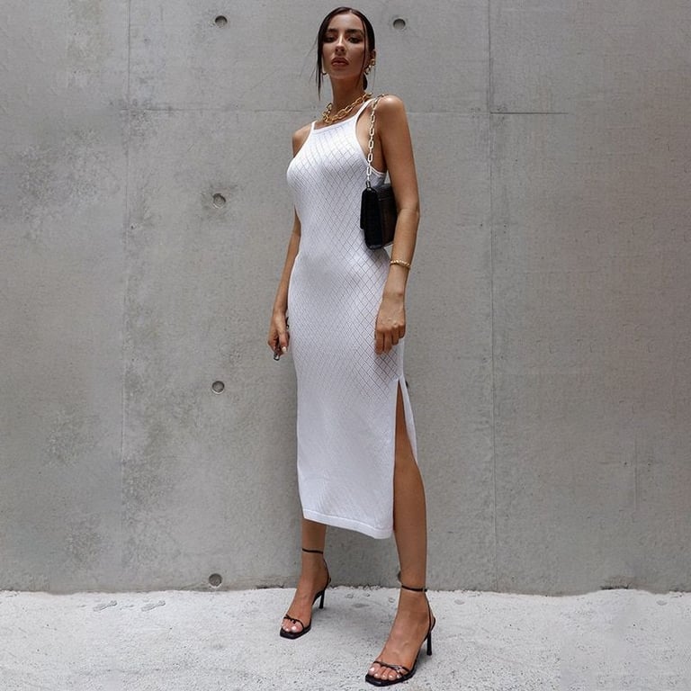 Bellissimo abito lungo moderno con spacco.