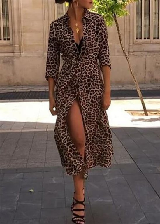 Abito midi leopardato