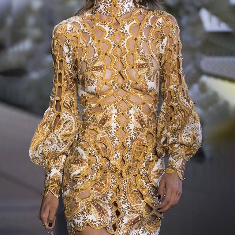 Abito mini molto originale in materiale trasparente decorato con pizzo.