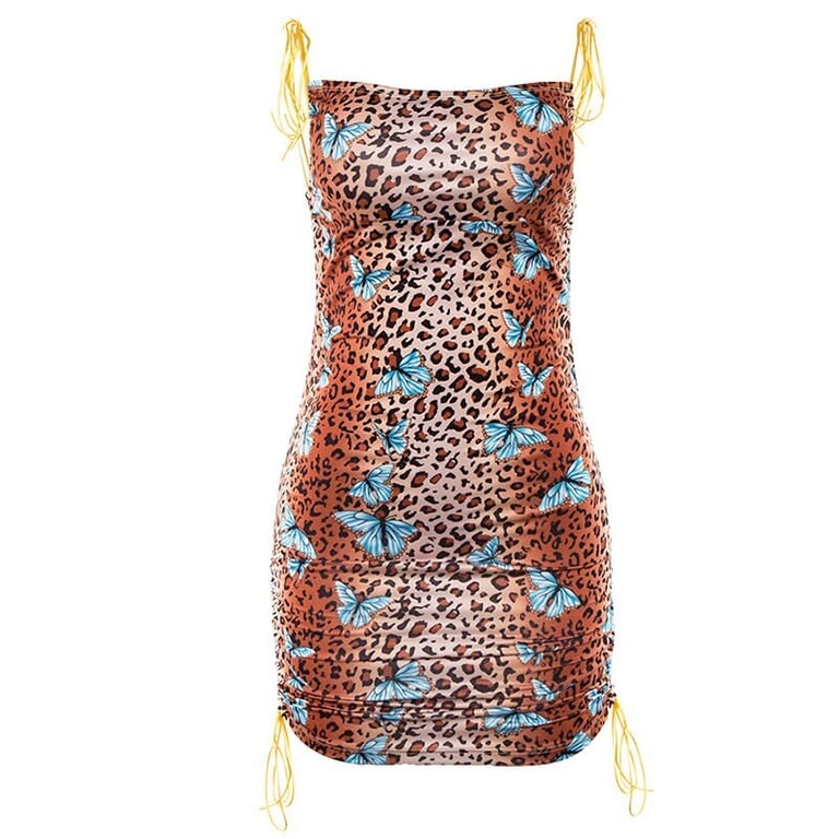Abito mini leopardato con farfalle