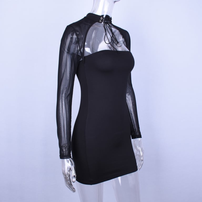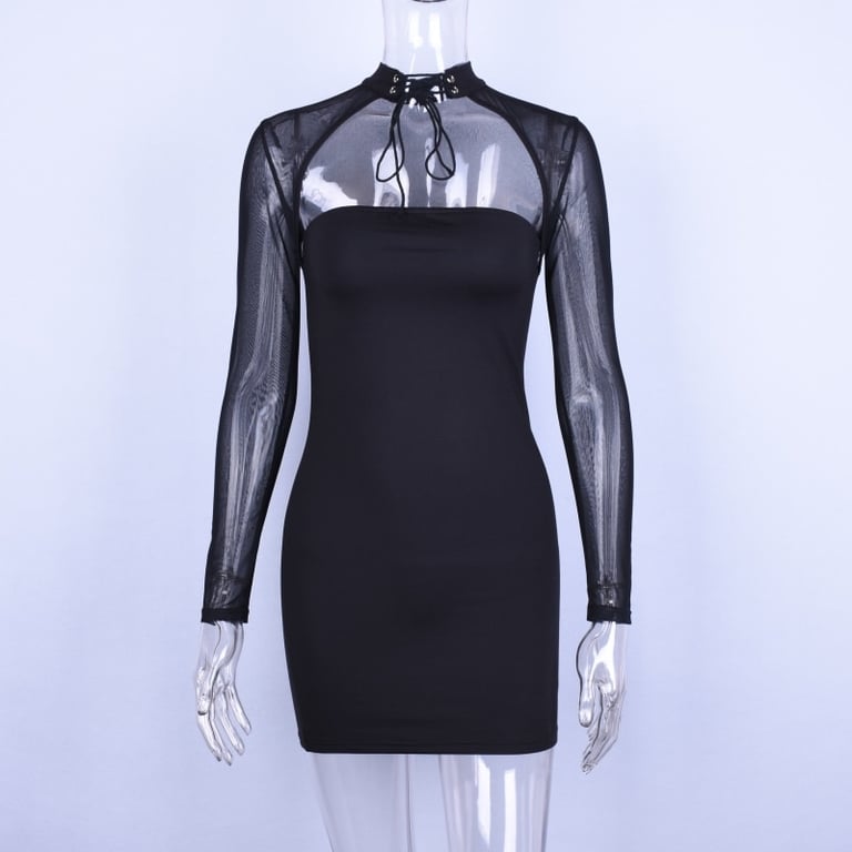 Abito da donna in lunghezza mini. Maniche lunghe trasparenti.