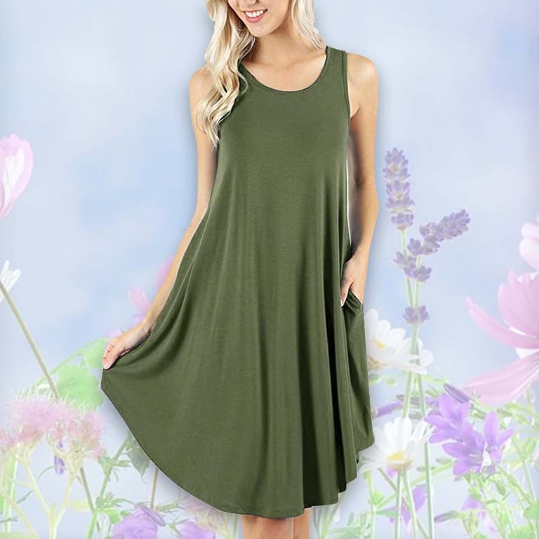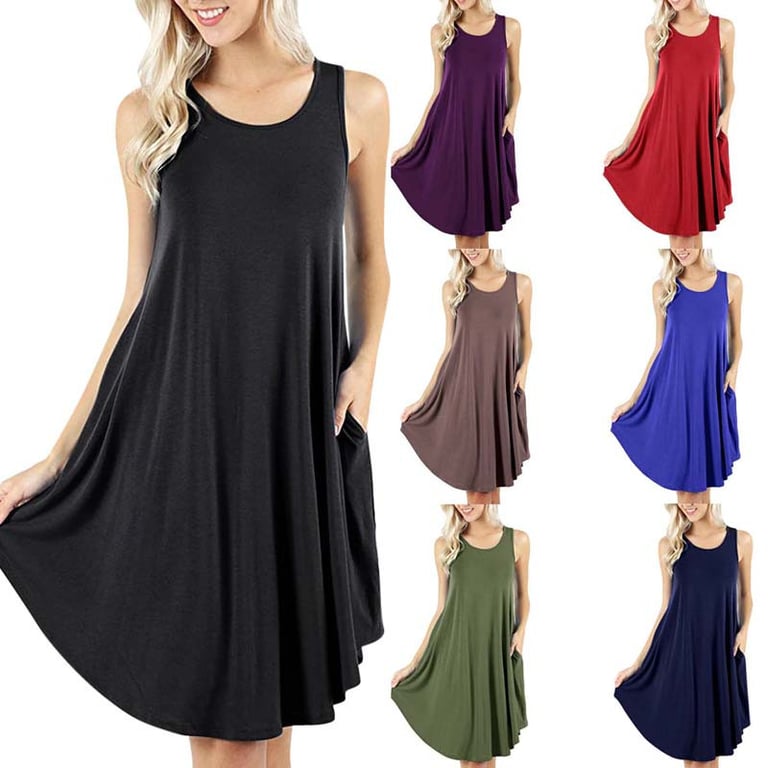 Abito da donna semplice, ideale per le giornate soleggiate di primavera o per l'estate calda, adatto per la spiaggia, il giardino e per l'uso quotidiano.