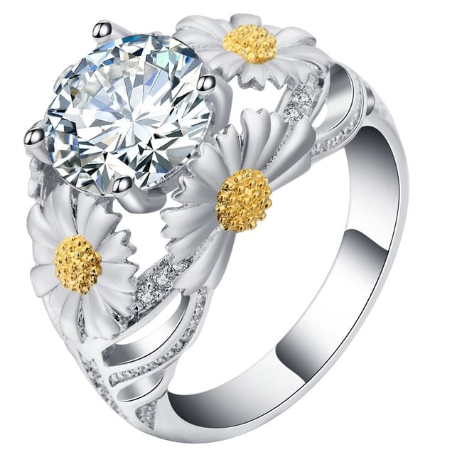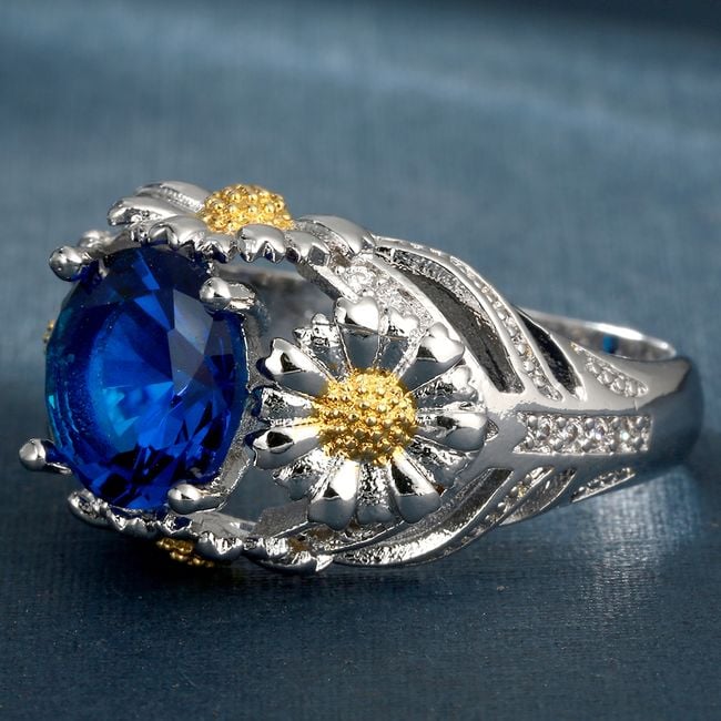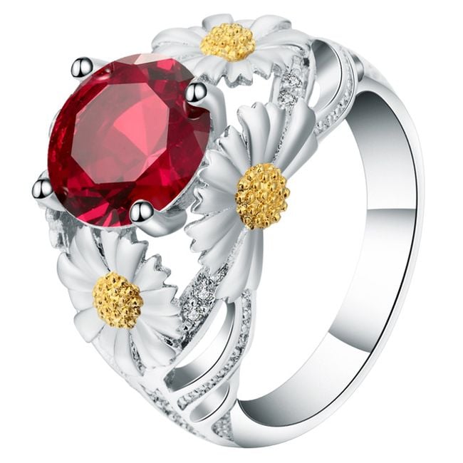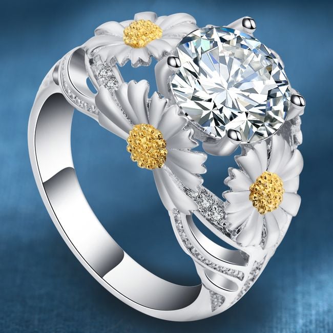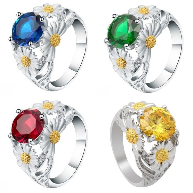 Anello da donna con grande pietra e fiori – 5 colori