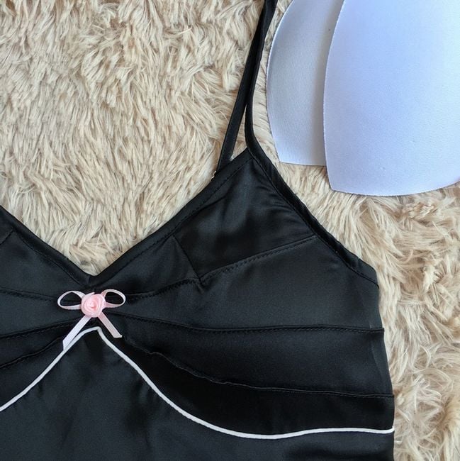 Un pigiama sexy, che è anche comodo, farà felici voi e il vostro partner. È realizzato in un materiale adatto per le calde notti estive. Vi terrà piacevolmente freschi, niente più notti sudate. È di colore nero con dettagli in rosa. Il seno è imbottito, quindi avrà una forma, ma sarà comunque comodo senza reggiseno. Non mancano le spalline regolabili. Vi preghiamo di prestare attenzione alla tabella delle taglie nella parte inferiore della pagina.