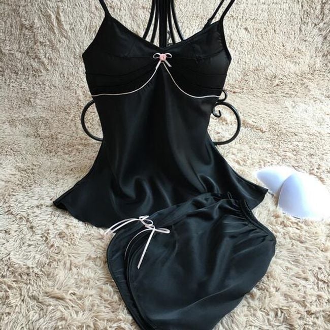 Bellissimo pigiama da donna nero con fiocchetti.