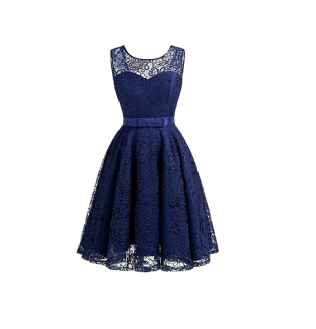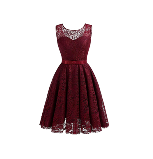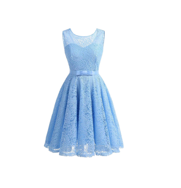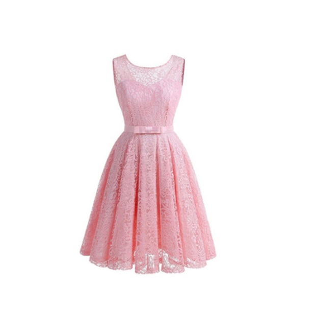 Il vestito è senza maniche, ha una gonna a campana ed è adatto come accessorio per eventi sociali.