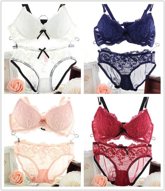 La biancheria intima femminile è decorata con pizzo. Sono indicate le misure del prodotto, non del corpo.