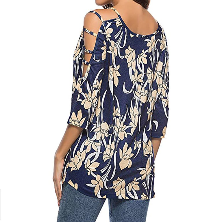 Blusa da donna con maniche 3/4. Ha tagli alla moda sulle maniche e scollatura rotonda. Vestibilità ampia e comoda. Adatta per primavera e estate.
