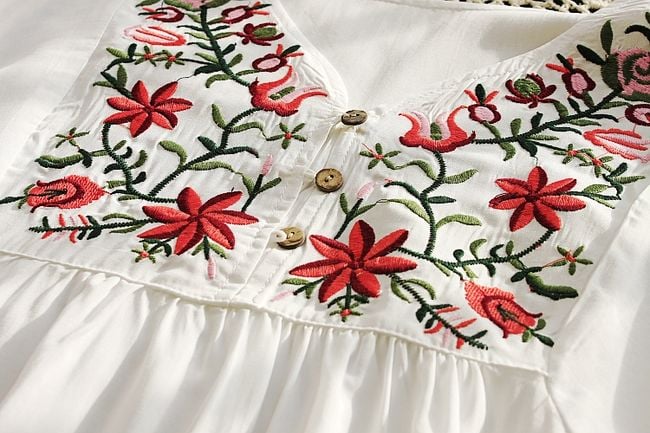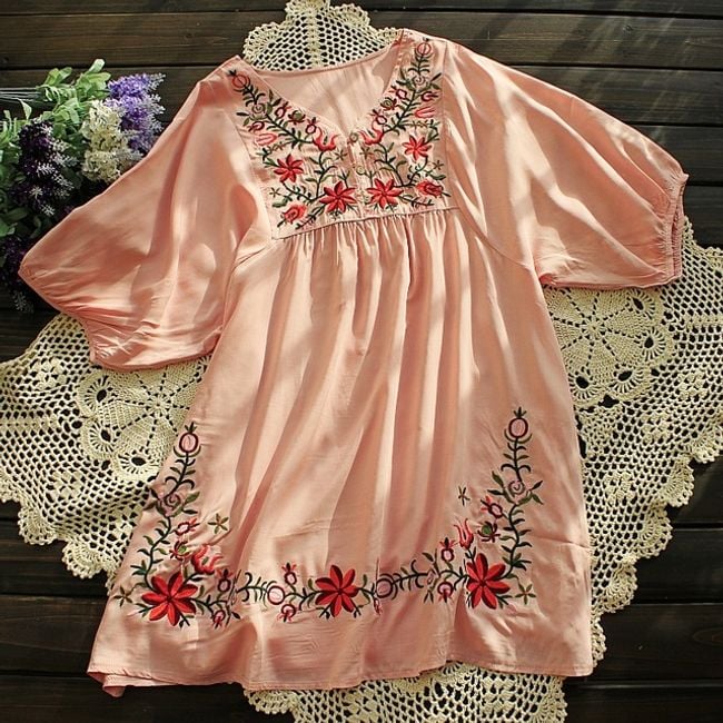 La blusa stilosa da donna ha una vestibilità ampia e ricami. È disponibile in taglia universale e in 3 varianti di colore.