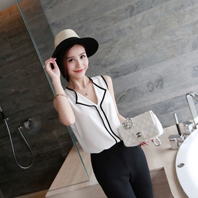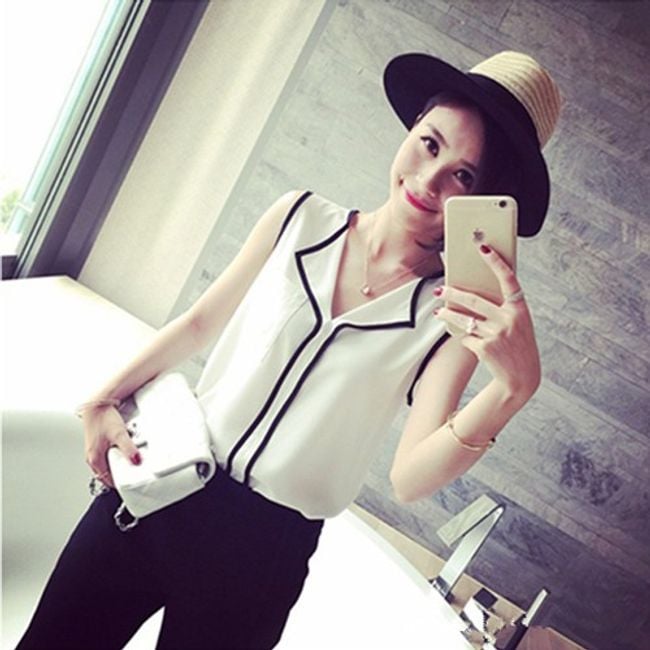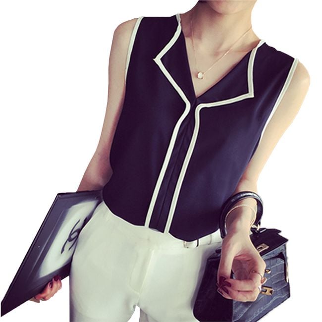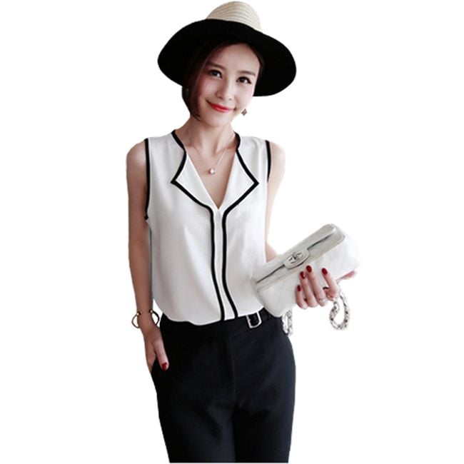 Questa blusa piacerà a ogni donna che preferisce uno stile di abbigliamento più elegante. Ha un collo a V ed è senza maniche, quindi sarà più che utile in estate. È disponibile in due colori.