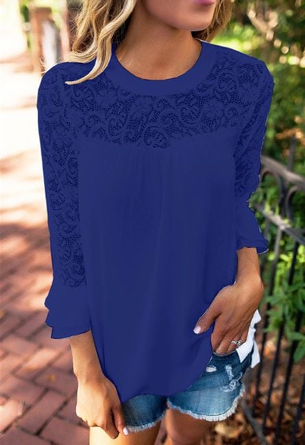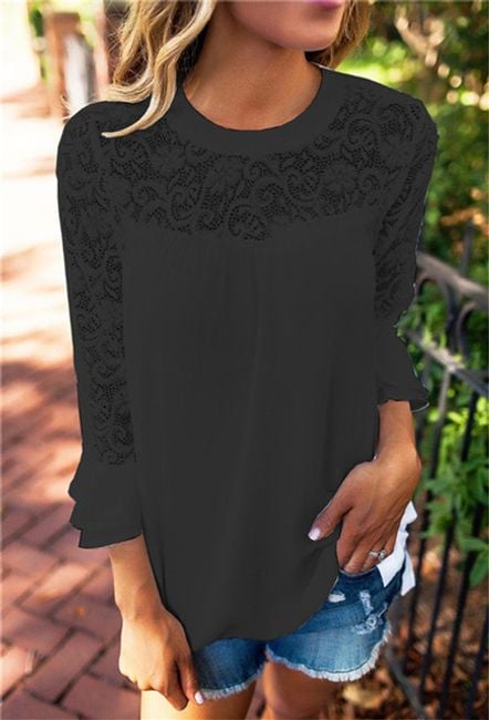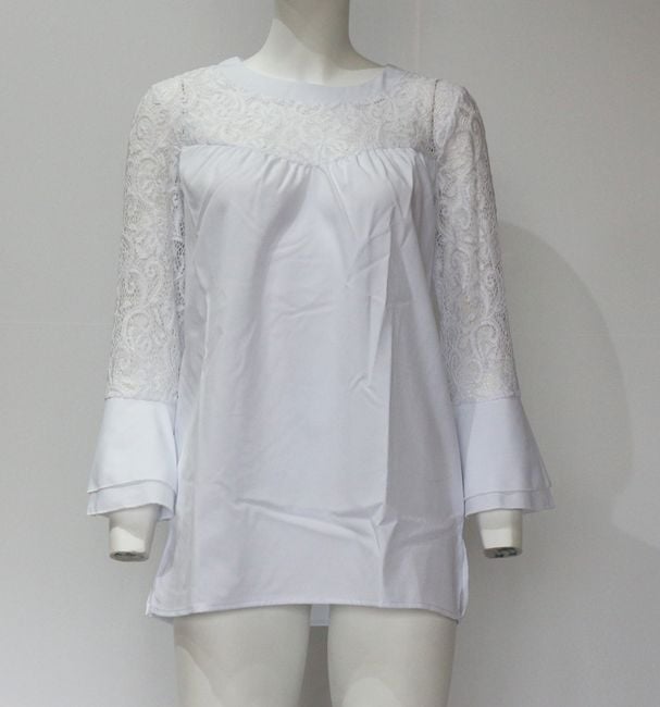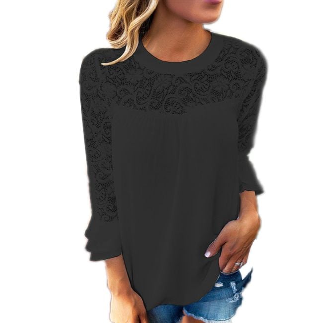 Blusa elegante da donna con maniche lunghe decorata con un interessante elemento in pizzo.