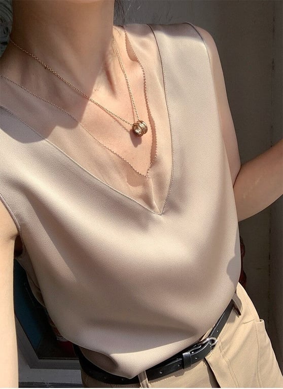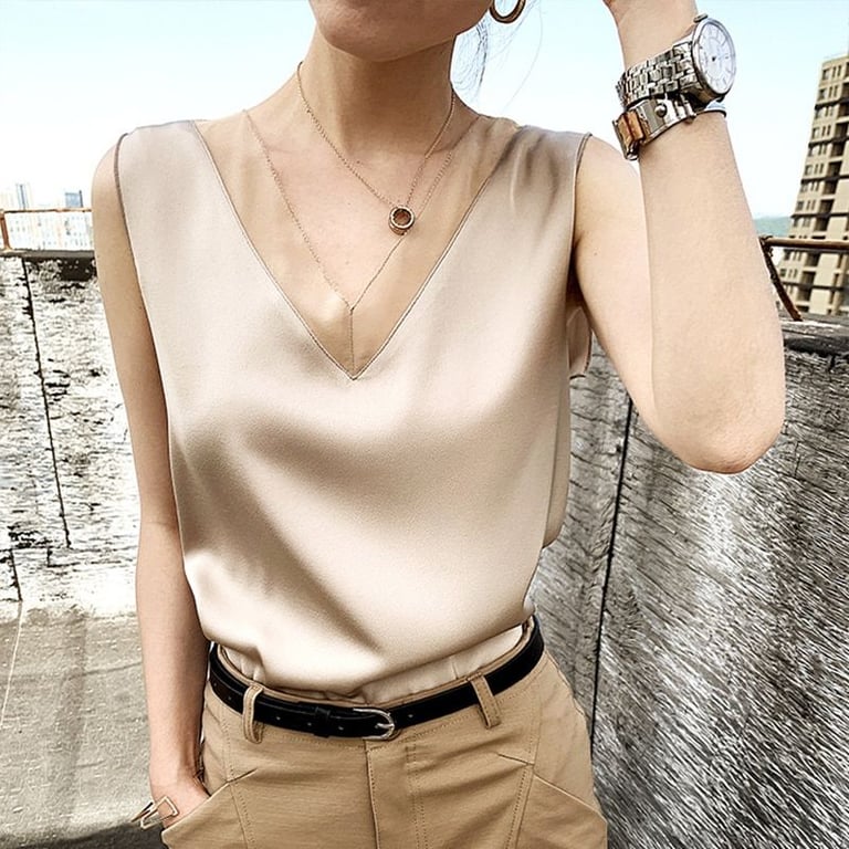 Blusa elegante da donna con scollatura a V e spalline larghe