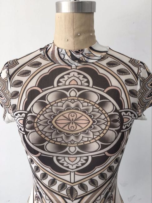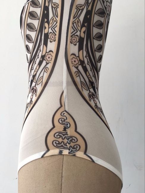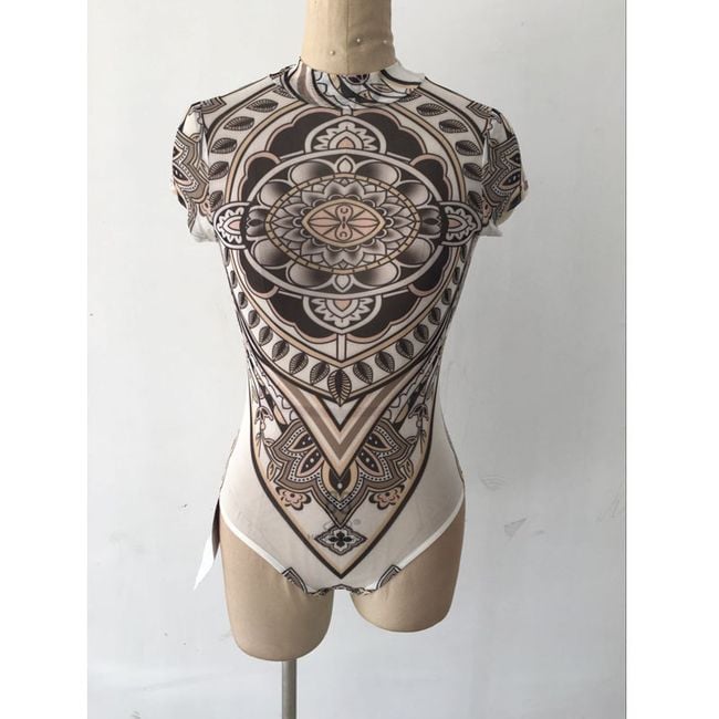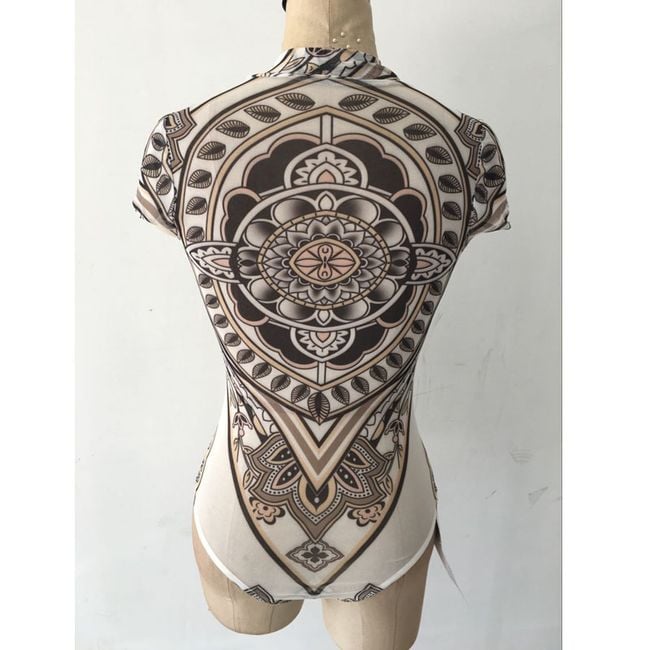 Body trasparente da donna senza maniche decorato con un motivo originale.