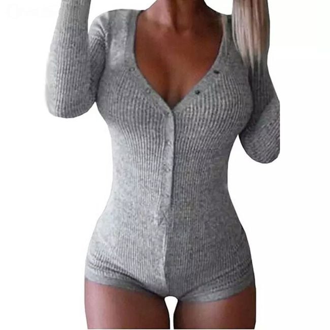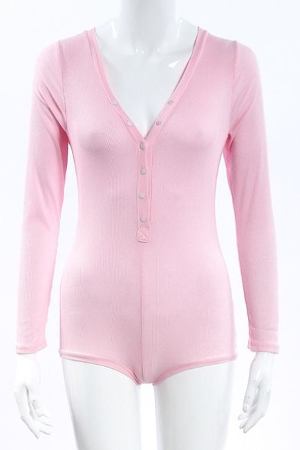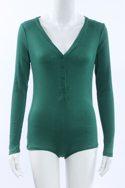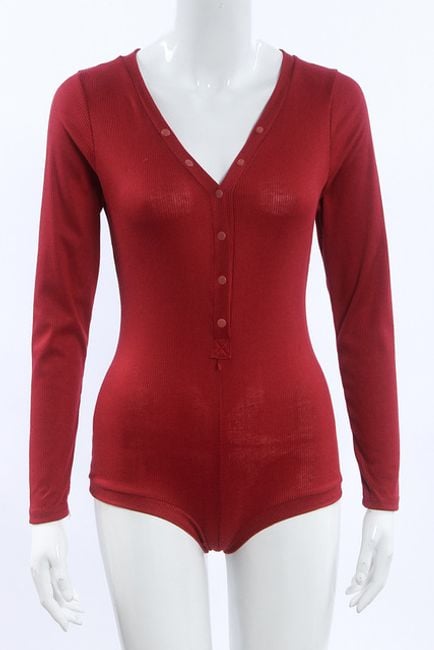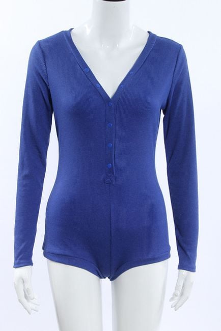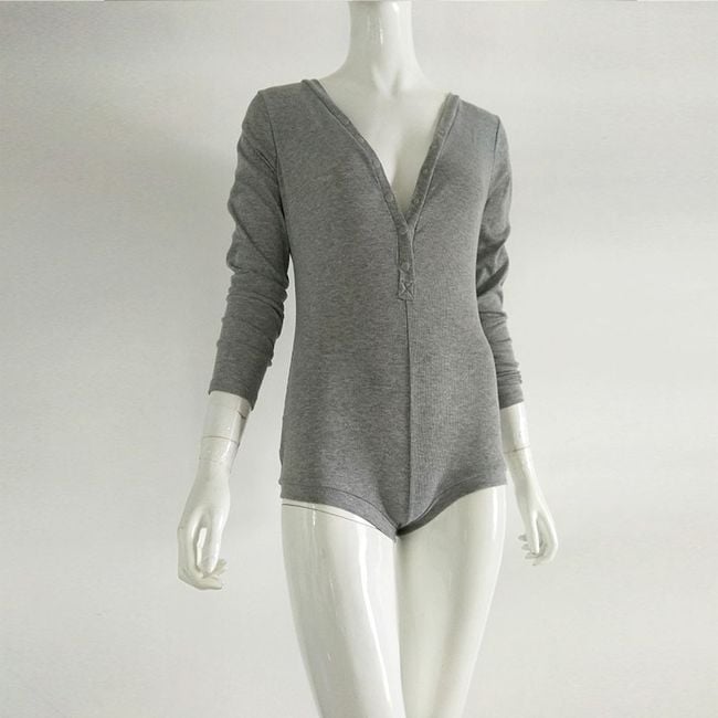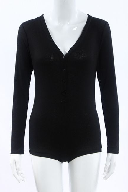Body aderente da donna con maniche lunghe presenta una profonda scollatura e chiusura con bottoni. Disponibile in 6 varianti di colore.
