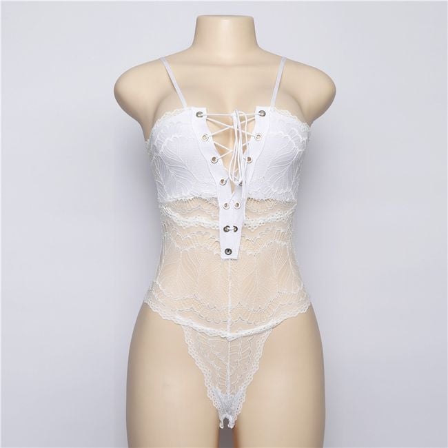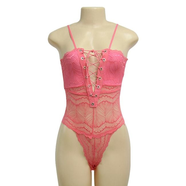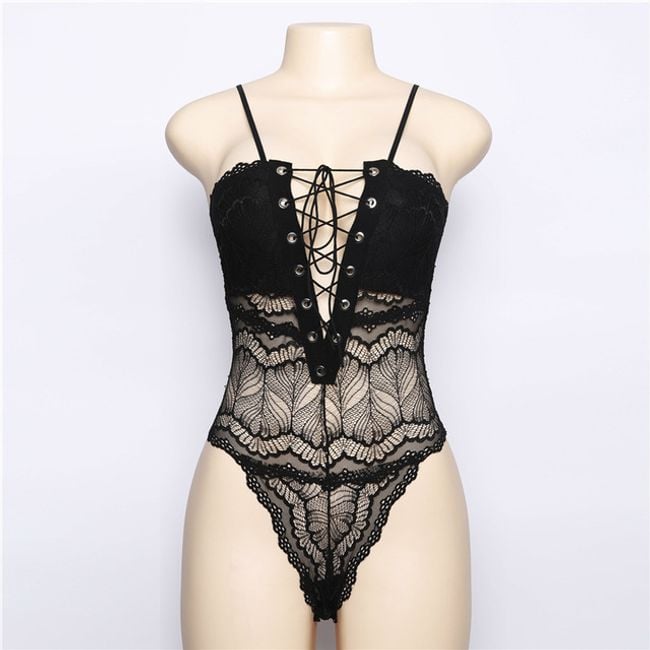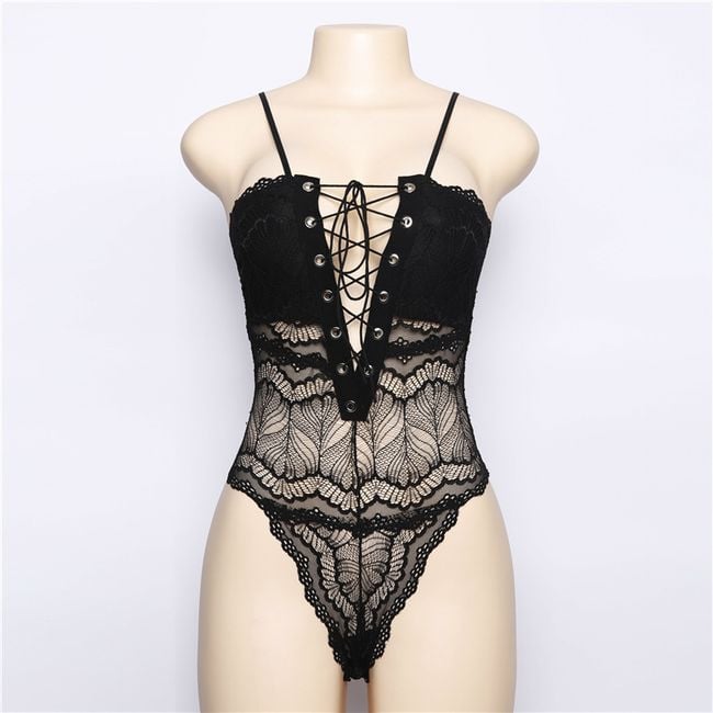 Non avere paura di mostrare le tue curve e osa con un body in pizzo con grande scollatura e lacci. disponibile in 3 varianti di colore.