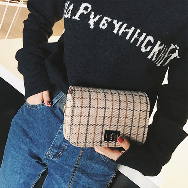Borsa piccola da donna con motivo a quadri. Tracolla a catena. Chiusura con fibbia. Disponibile in diverse varianti di colore.