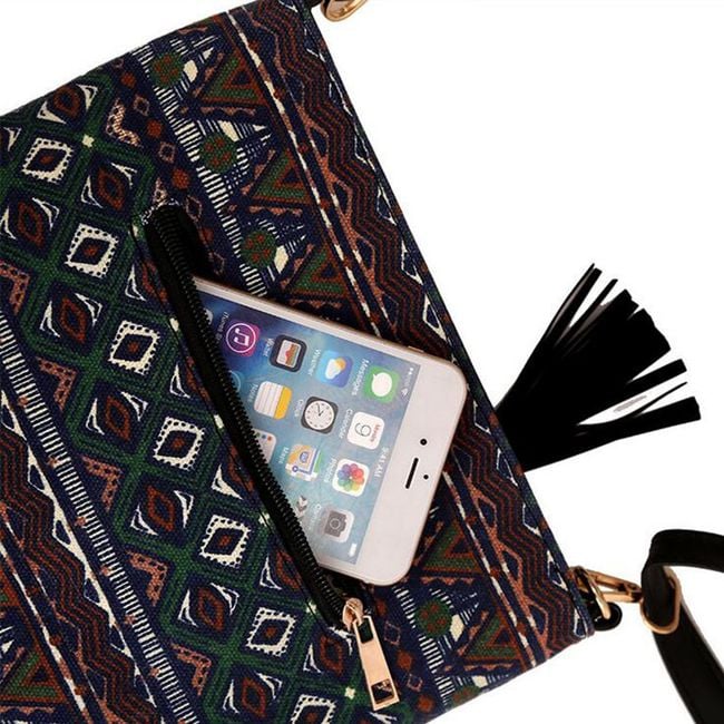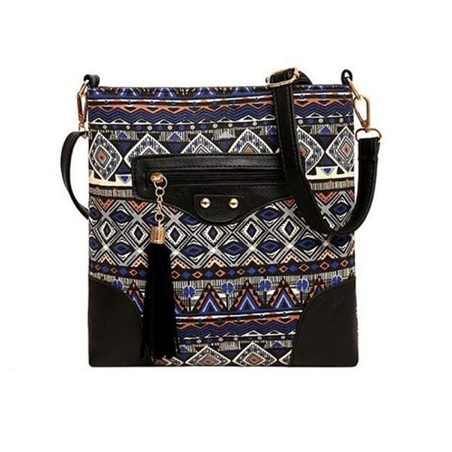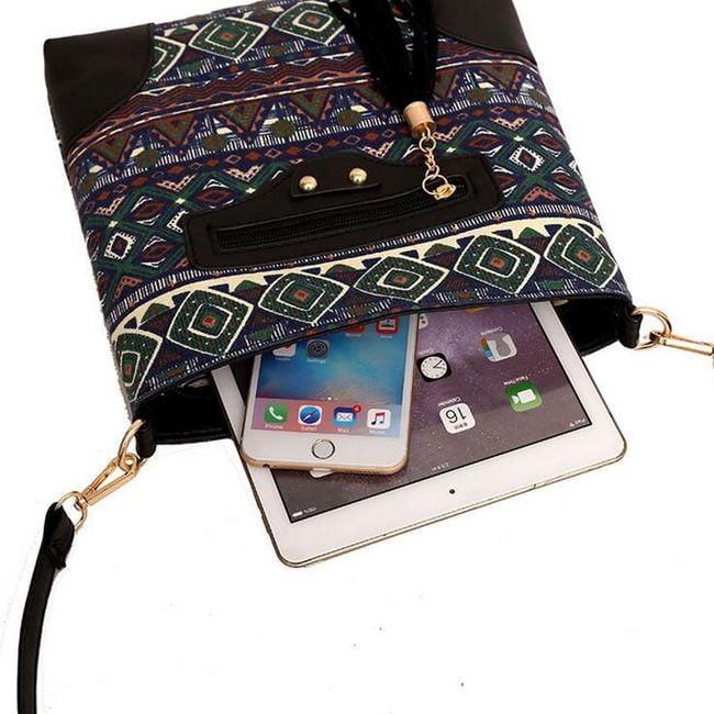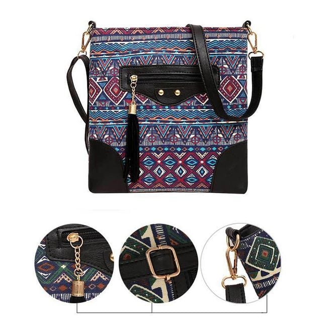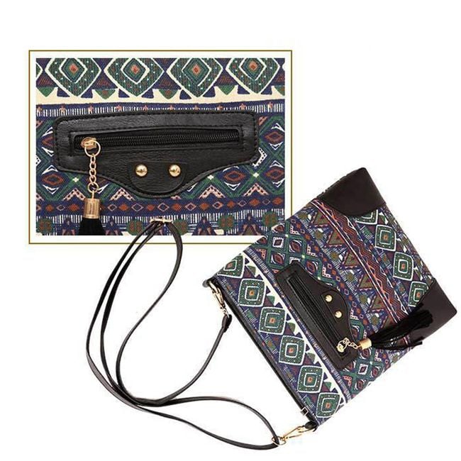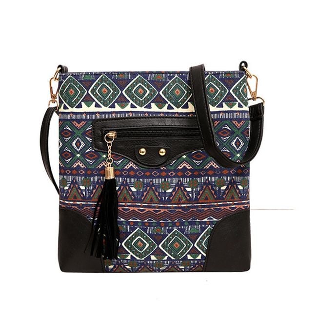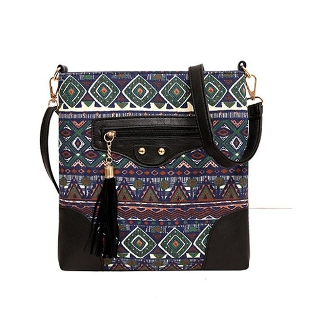 Borsa con motivi geometrici e combinazioni di colori disponibile in diverse varianti.