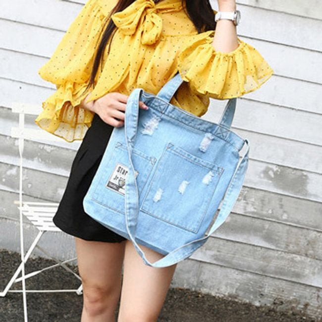 Borsa in denim da donna, da portare a mano o a spalla.