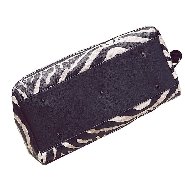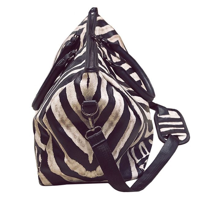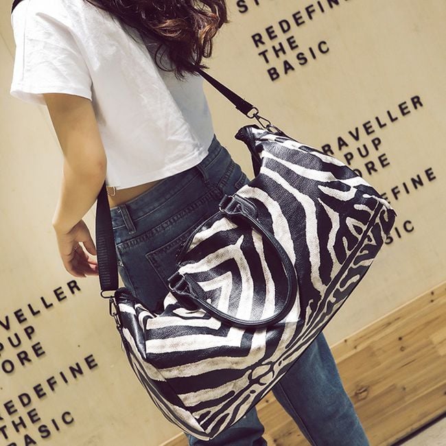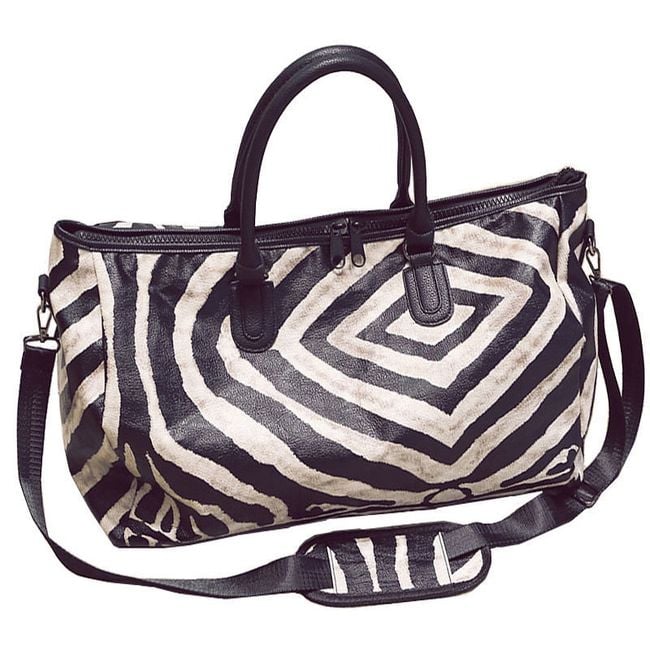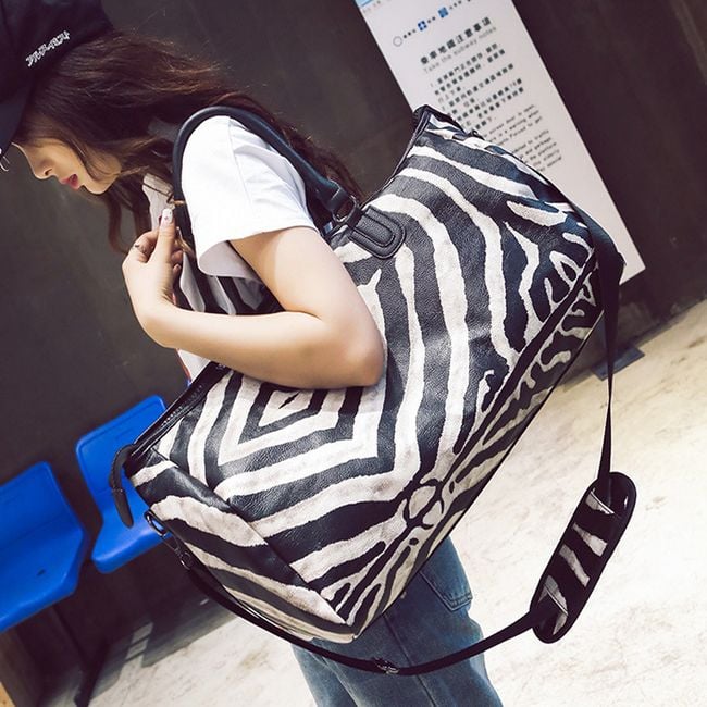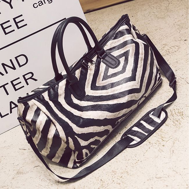La borsa ha una forma quadrata, un motivo bianco e nero ed è adatta come accessorio per l'uso quotidiano.