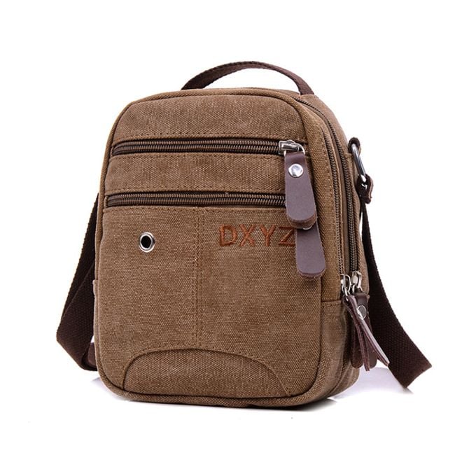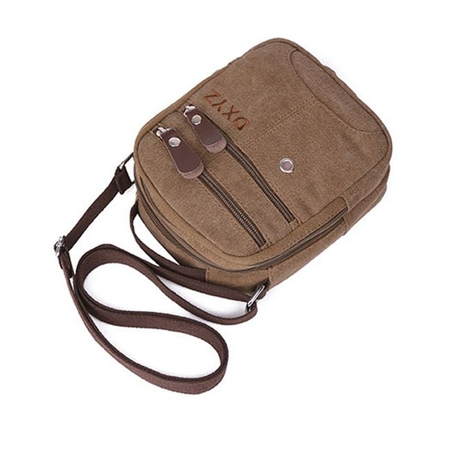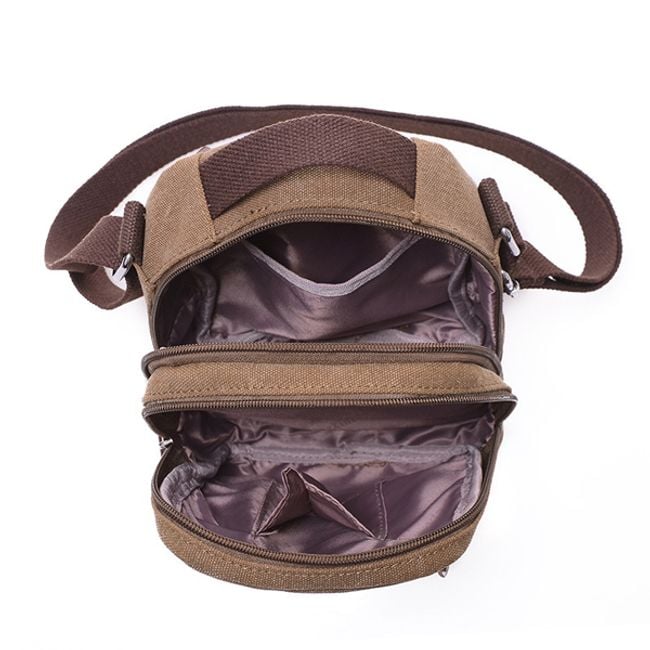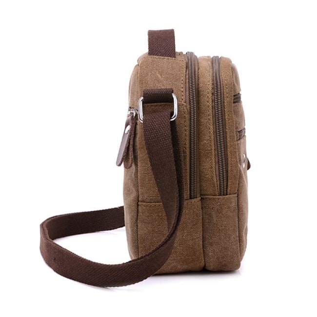 Borsa a tracolla pratica, apprezzata da uomini e donne. Lo spazio principale è composto da due tasche. Sul lato anteriore, la borsa è dotata di due tasche più piccole. Sul lato posteriore c'è una tasca più piccola. La tracolla è regolabile con una fibbia e sul retro della borsa c'è un pratico anello.