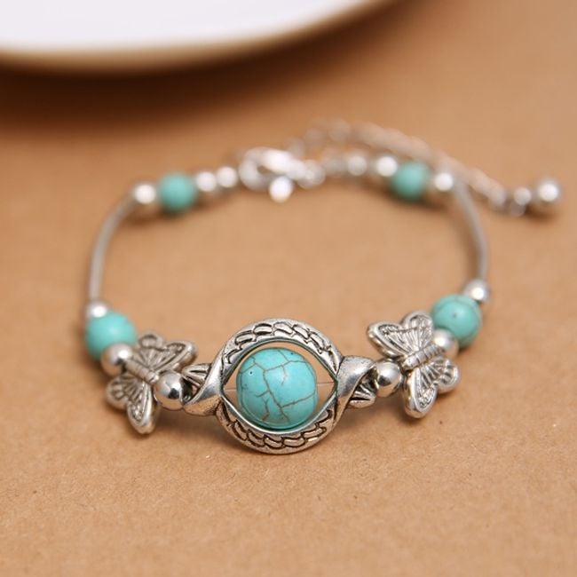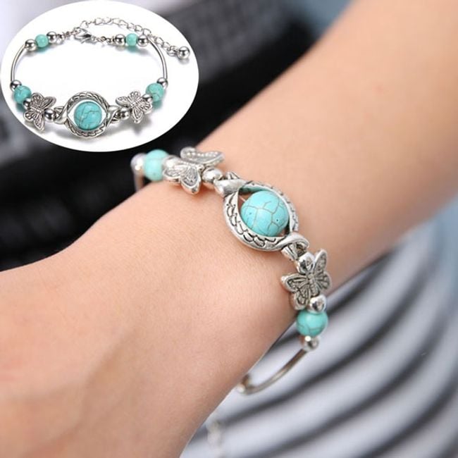 Bracciale da donna con pietre in colore turchese farà felice ogni donna che ama i gioielli. Il bracciale è delicato e appare molto sottile al polso. Se vuoi fare un regalo a una tua conoscente, puoi anche acquistarglielo.