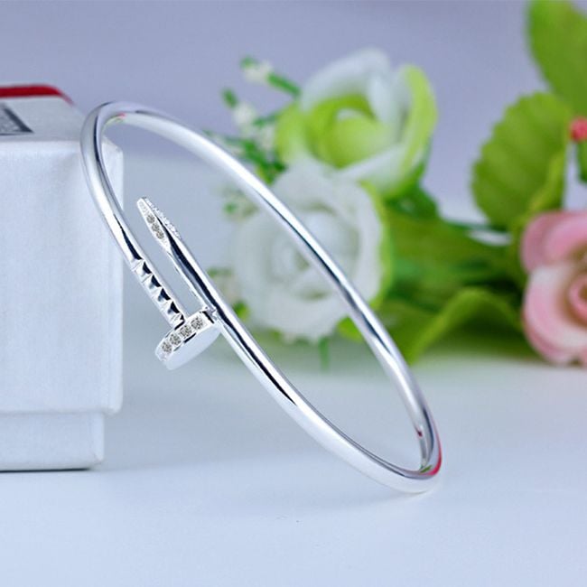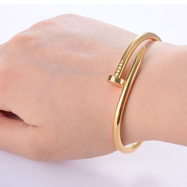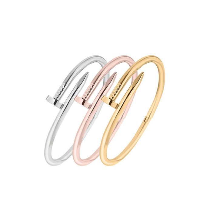 Se desiderate un bracciale che sia elegante, delicato e un po' atipico, avete trovato quello giusto. Le linee semplici di questo bracciale in tutte le sue varianti sono un ornamento discreto per il polso. Potete scegliere il motivo di un chiodo, di una chiave o di due elementi a forma di T con pietre. Potete anche scegliere tra diversi colori.