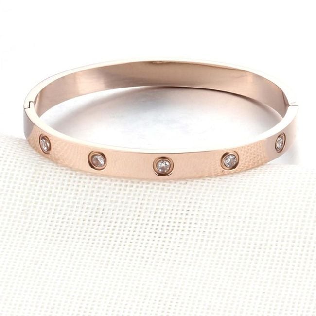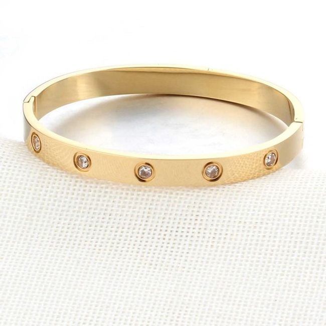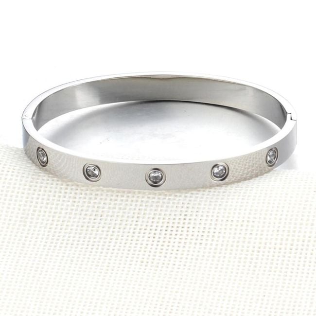 Bracciale rigido in metallo da donna con pietre - 3 colori