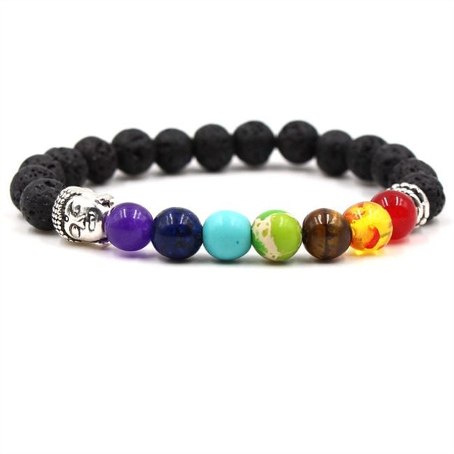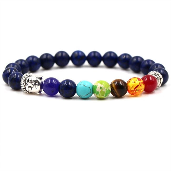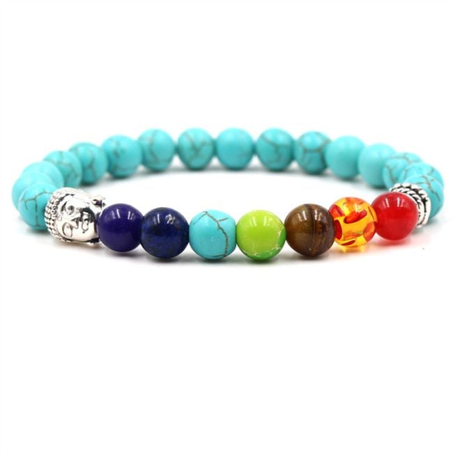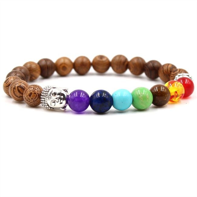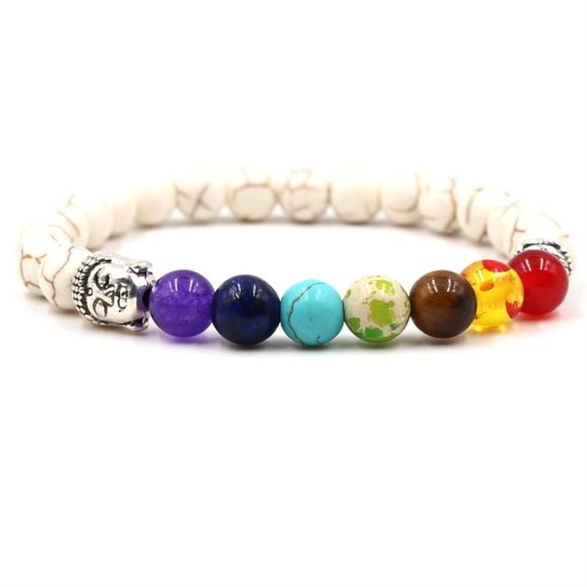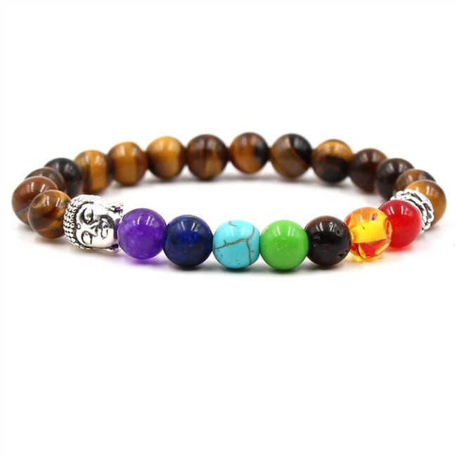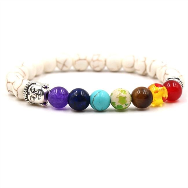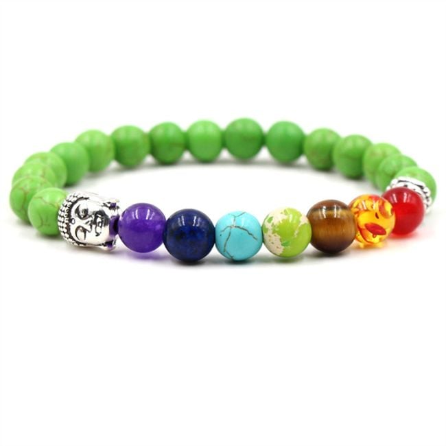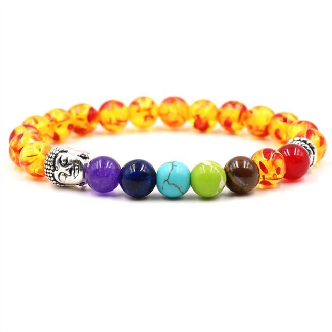 Un bracciale stiloso con perline artificiali è decorato con motivi bohemien.