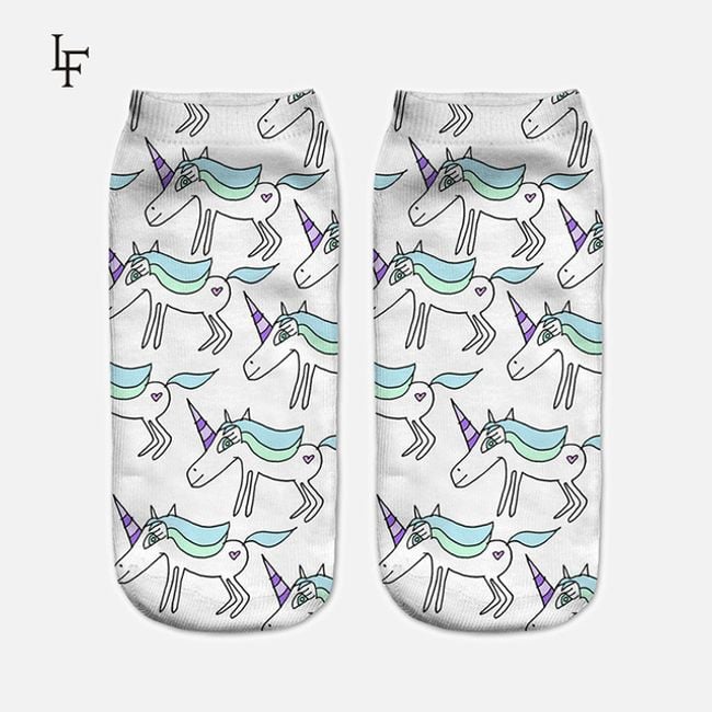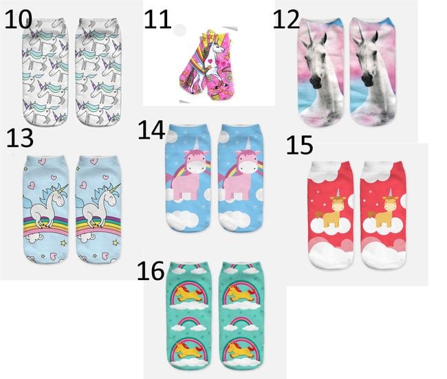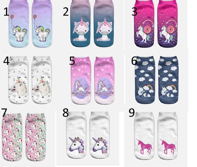 Distinguetevi dalla folla con calze decorate con motivi di creature mitologiche in un'animazione stilosa. Troverete 16 varianti diverse nella nostra offerta. Queste calze alla caviglia sono un must-have! I numeri dei singoli motivi per l'ordine sono disponibili nella galleria di immagini.