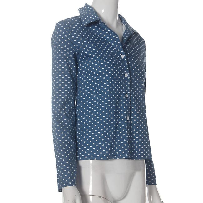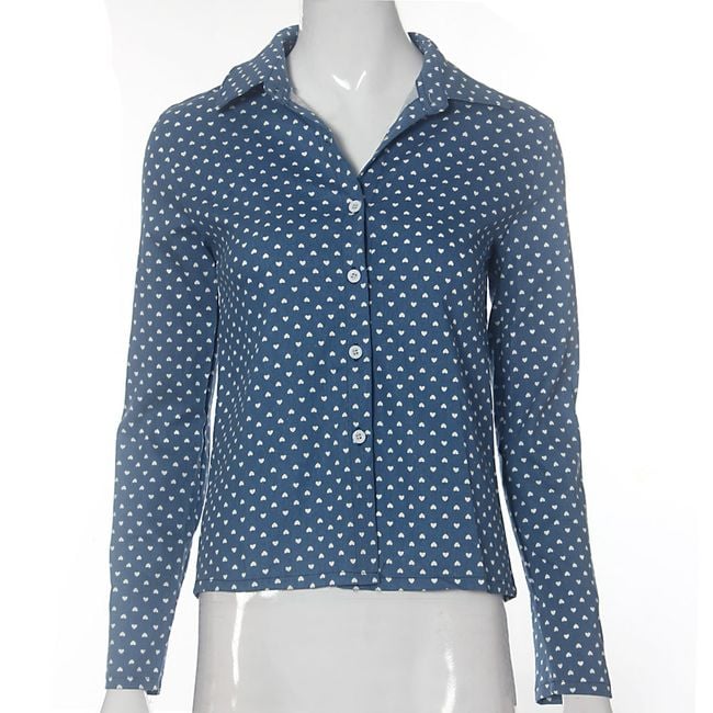 La camicia da donna è decorata con pois. Le misure indicate sono quelle del prodotto, non del corpo.