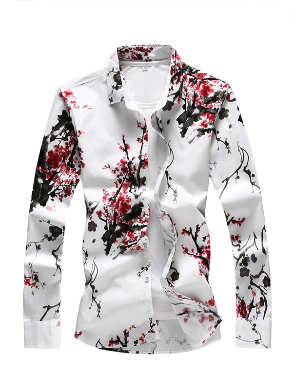 Camicia da uomo a maniche lunghe con stampa floreale
