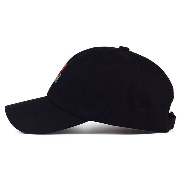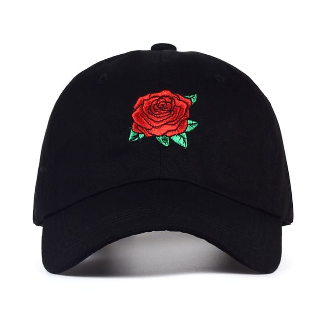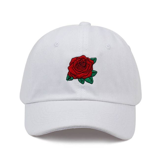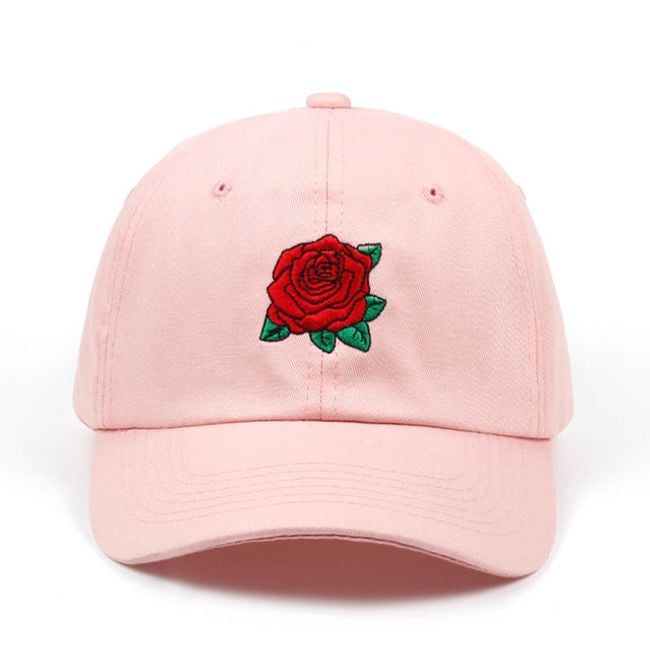 Il cappellino da donna è decorato con un piccolo ricamo a forma di rosa. Puoi averlo in colore nero, bianco o rosa.