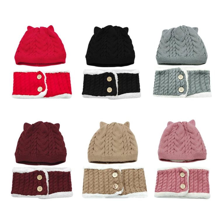 Cappello e scaldacollo lavorati a maglia per bambini con orecchie