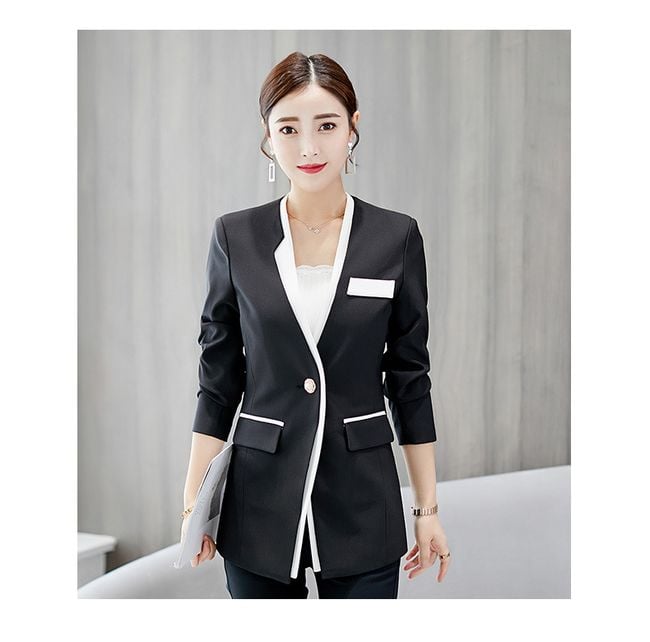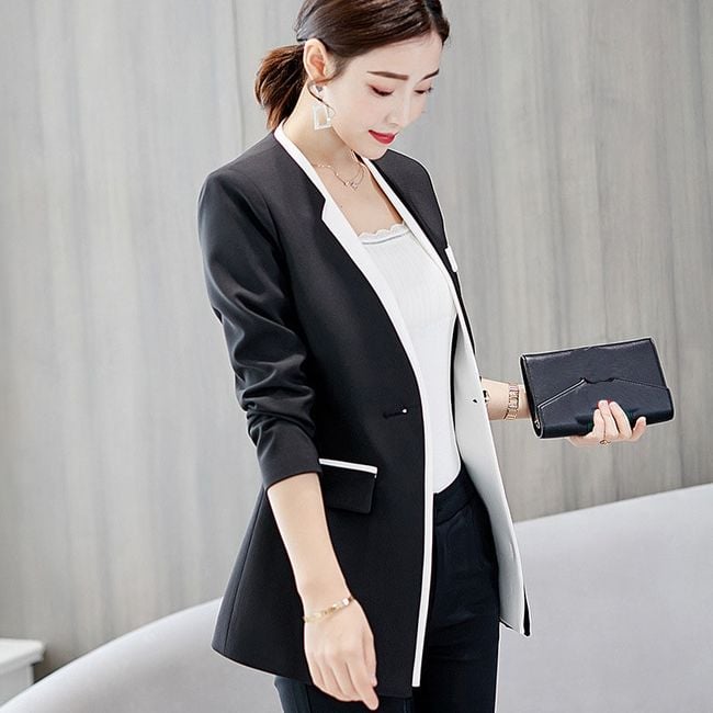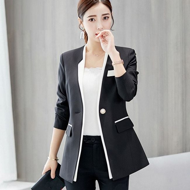 Il giacchino ha un taglio molto lussuoso, un colore bianco e nero ed è adatto sia per il lavoro che per un caffè con un'amica.