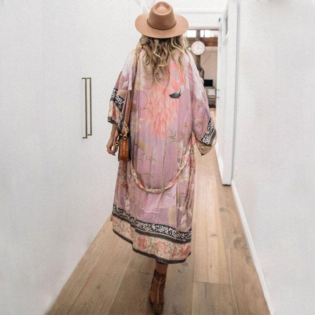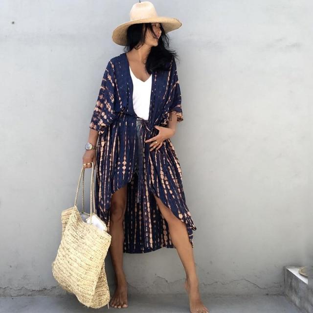 Cardigan estivo sopra il costume da bagno. Il cardigan è realizzato in poliestere ed è disponibile in diverse colori e fantasie.
