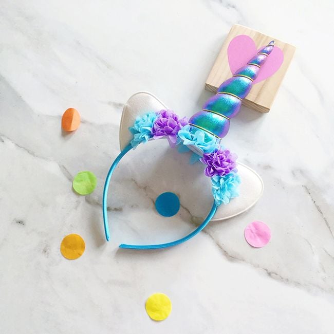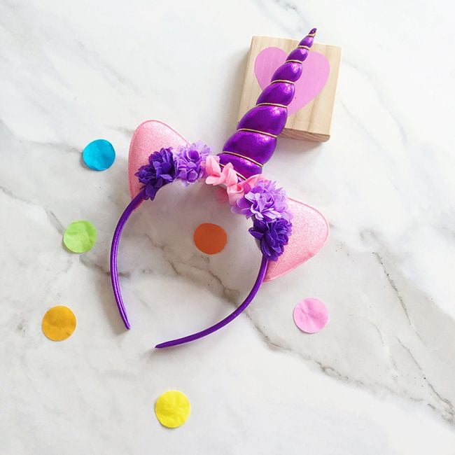 La fascia con fiori e corno di unicorno farà felice ogni piccola amante della moda e degli unicorni mitologici.